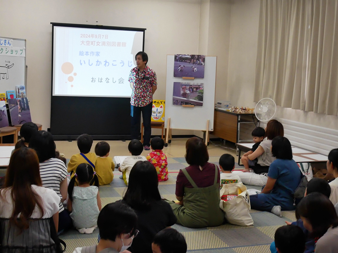 主に絵本作家の講演会やワークショップを実施しています。普段読んでいる作家さんのお話を聞くことで読書への興味関心を高めることを目的としています。